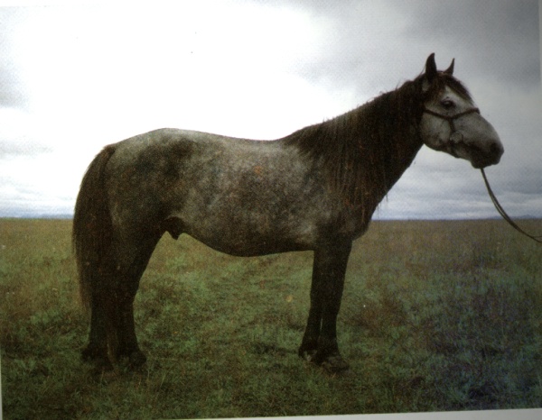 | 体型 | 体质结实干燥或显粗糙。颈长中等,多斜颈。颈肩结合良好。肩稍立,鬐甲高长中等。胸廓宽深,背腰平直,少数马略长。腹形正常,尻宽略斜。肢长中等、关节、肌腱和韧带发育良好;前肢肢势正常或稍外向。部分后肢略显刀状和外向;蹄大较平,蹄质略欠坚实 。 | 毛色 | 毛色以黑毛、骝毛、青毛较多,其他毛色较少,部分马头和四肢下部有白章。 |