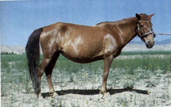 | 濒危依据及说明 | 体貌概述 | 体质结实,体型多呈正方形。头形正直,中等大,眼大眸亮。耳小直立,鼻孔大,颜面干燥。颈长中等,大约呈30°倾斜。鬐甲不高而长。前胸宽,胸廓深长,背长中等,腰短宽,腹部充实,尻广稍斜,肌肉发达。四肢关节、肌腱均发达,距毛小,蹄质坚硬,前肢肢势端正,后肢稍外向。公马的鬃鬣、尾毛较长。毛色以骝色为主,青、黑、栗毛次之,头部白章较多见。 | |