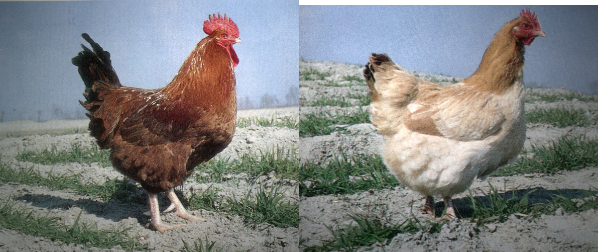 体型较大,外形近似方而浑圆,公鸡羽毛紧凑,头昂尾翘。红色单冠、直立。全身羽毛有红、黄两种,母鸡全身羽毛基本黄色,尾羽多呈黑色。单冠红色,冠齿大小不一。喙、胫黄色。 |