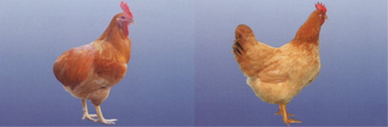 体型呈长方形。头稍大,脚高,四趾、喙黄,皮肤黄,脚黄,公鸡单冠直立,冠、肉垂、耳略大,色深红,虹彩金黄色。按体型、羽毛分为大、中、小三型,小型现为矮脚 |