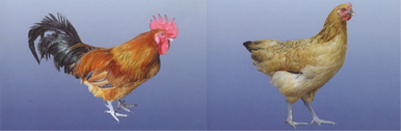 体型矮小,多数公母鸡主翼羽、主尾羽、胫、喙都是黑色,副翼羽为黑黄色,单冠,虹彩棕黄色,肉垂和耳垂为红色。公鸡羽色以金黄色、棕红色、黄黑色较多,母鸡以麻黑色、黑白花、土黄色较多 |