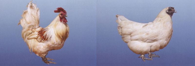 胫骨短。体型中等,体质结实。羽毛颜色具有多样性,以灰色和土黄色为多,颈上多有一圈黑色羽毛,肤色多为淡粉红色。单冠,虹彩黄红色,喙淡黑色和黑色。 |