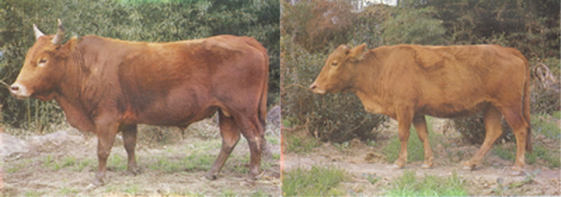 体型较小,体躯紧凑结实。被毛黄色居多,头略长,角型多样。分为短而圆滑,角尖向外的芋头角。颈长适中,垂皮发达;前躯开阔,胸深良好,肩峰较高,中躯发育适中,背腰较宽,尻部较长而显狭窄,四肢较长,肢势端正。蹄较小而质地坚实。 |