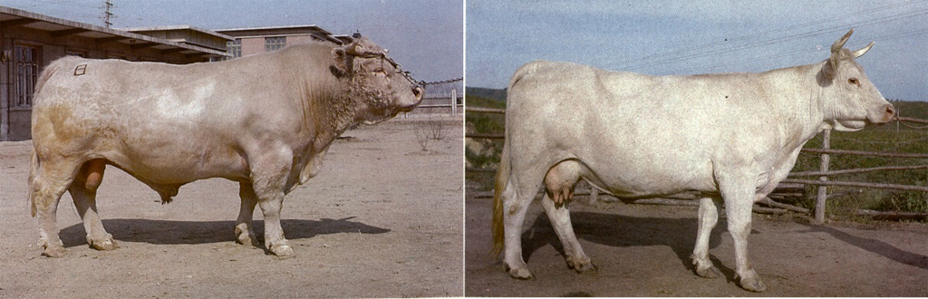 属大型肉用品种,头小,颈宽、颈短多肉,角圆而较长,向两侧向前伸展,并呈蜡黄色。体躯高大强壮,胸极深、背腰,臀部肌肉鼓窄明显,尻部肌夹沟清晰,四肢粗,常有不正,公牛双鬐甲和凹背基多,毛色白或乳白,有的呈黄白色。 |