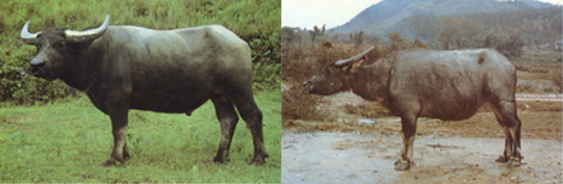 体躯较高,四肢粗壮。被毛多分为灰黑色。头大小适中,额宽平,角形有近圆形,半圆形,木叉形和直角形四种。个别有垂角。背腰宽长,鬐甲显露,尻宽大而倾斜,乳房不发达,前肢距离宽,稍呈弧形,后肢飞节内弯,蹄圆大。 |