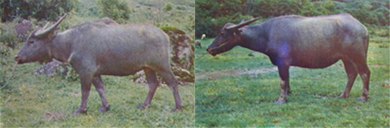 体躯高大结实,骨骼粗壮,被毛稀疏,有位置不定的旋毛,毛色有黑、瓦灰及白色三种。头大小适中,公牛较粗重,角形有筲箕角、箩筛角、排角多种。胸宽深,背腰平直,尻长中等、斜尻,四肢端正,粗壮短实,蹄质坚实。 |