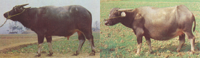 体躯粗重,矮壮宽短,骨骼结实,关节显露。皮肤瓦灰色,被毛分为黑、灰色,少有全白毛。头长额窄,多为大盘角,呈平四棱形。耳短宽,颈细长,有垂皮,胸宽深,鬐甲明显,背腰宽而短,腹圆大,尻宽稍斜,四肢粗壮而短。 |