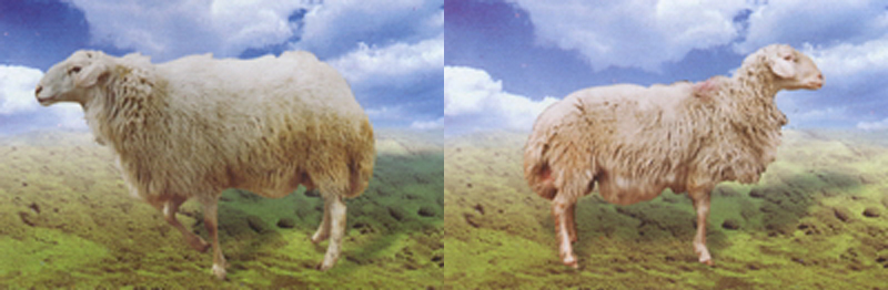 鼻微隆起,耳稍下垂,公、母羊均无角,体制结实,体格中等,前胸较窄,胸较深。背腰平直,肋骨开张良好,后躯略显前低后高。,四肢较矮,低身广躯,呈方正形,矮脂尾,不过飞节。全身被毛白色,少数羊头部有褐色或黑色斑点。 |