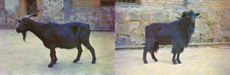 体躯近似长方形。头大小适中,呈楔形,额稍凸,鼻梁平直,公母羊均有须有角,角扁长,向后再向外弯曲伸展。公羊角粗大,母羊角稍细。鬐甲稍高,背腰平直,胸宽而深,肋微拱,腹大,尻宽稍斜,四肢粗短结实,毛色以黑以主 |