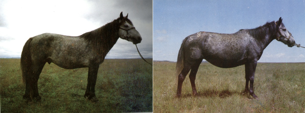 体质结实干燥或显粗糙。头较大,多直头及轻微的兔头或半兔头,耳长,形如竹叶,鼻孔大,颚凹较宽,颈长中等,多斜颈,颈肩结合较好。肩稍立,鬐甲高长中等。胸廓宽深,背腰平直。腹形正常、尻宽略斜。肢长中等,蹄大较平。毛色以青毛、骝毛、黑毛较 |