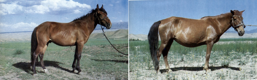 体质结实,体型多呈正方形。头形正直,中等大,颈长中等。鬐甲不高而长。前胸宽,胸廓深长,背长中等,腰短宽腹部充实,尻长稍斜,肌肉发达,四肢关节,肌腱均发达。前肢姿势端正,后肢稍向外。公马的鬃、鬣毛较少,头部白章较多见。 |