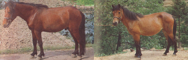 体躯短小精悍,四肢筋腱发达,头清秀,血管显露,耳小灵活,鬐甲低平,头颈结合良好。前胸发育适中,背腰短平,臀部肌肉丰满,多呈斜尻,前肢端正,有距毛,蹄质坚实,尾毛厚长。毛色繁杂,以骝毛、栗毛、青毛、兔褐毛、黑毛为主。 |