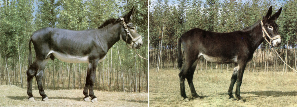 属大型驴,体格高大粗壮,体躯较短,体质坚实,结构匀称,头较大,两耳竖立。颈粗壮而高昂。鬐甲宽厚微隆。前胸开阔,胸廓深宽,背部宽广平直,腹部充实,尻宽而短斜。四肢粗壮,肌腱明显。全身被毛粗密,毛色以“黑、白”为主。 |