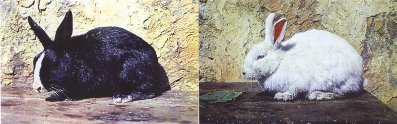 耳短而直立,嘴尖,无垂髯。白毛兔的眼为红或兰色,其它毛色兔的眼为蓝或黑色。毛色以白为主,其次为灰色,黑色、黑白杂花,少数为麻色,草黄色或麻黄色。 |