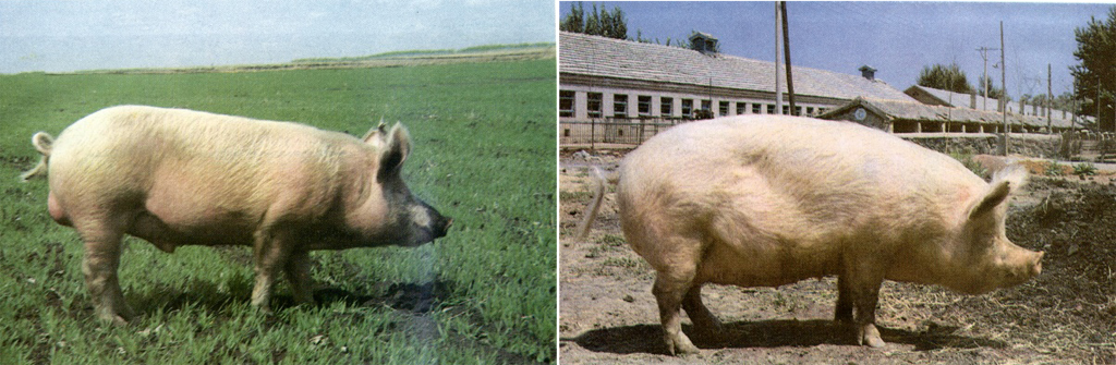 体质结实,头较大,嘴长直,面微凹,两耳直立,向前倾,颈肩结合良好,背腰长直宽平,肋骨弓隆,腹部丰满不下垂,腿臀较丰满,四肢粗壮,被毛全白。 |