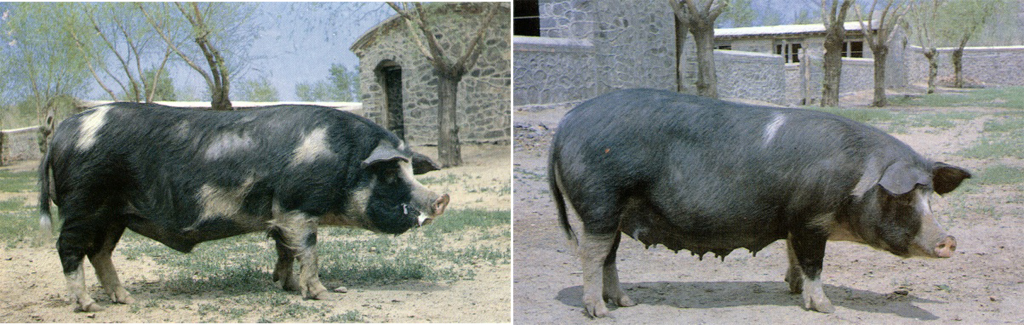体质结实,结构匀称,头中等大,颜面微凹,耳直立或稍微前倾,胸宽深,背腰平直,后躯丰满,肢蹄强健,被毛为黑白花色,白毛片状或点状不规则分布 |