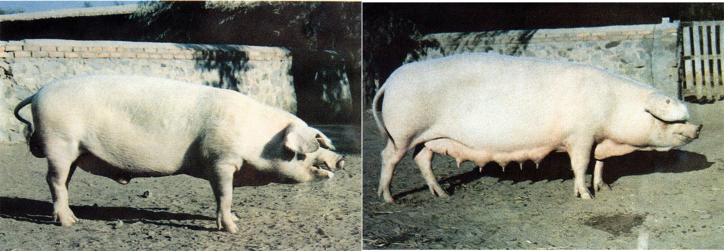 体躯特长,头小,鼻嘴直,狭长,两耳向前下平行直伸,体质粗壮,疏松,背腰特长,后躯发达,臀腿丰满 |