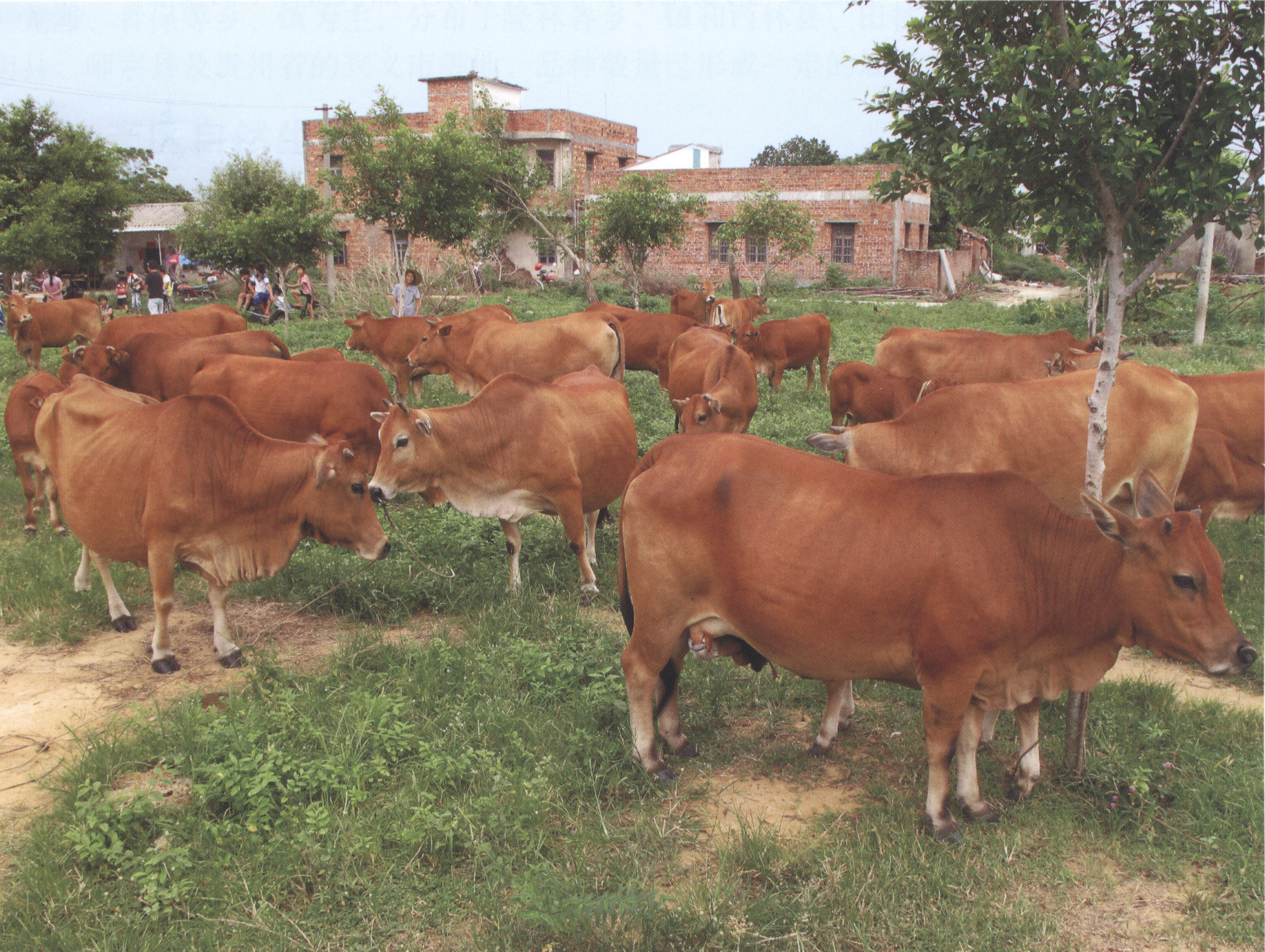 | 农作物条件及利用 | 产区地处亚热带,气候炎热,受海风影响,昼夜温差大。地属红粘土,土质肥沃。农作物有水稻、花生、甘薯、木薯、甘蔗等。作物生长良好,农副产品丰富,尤其有以甘蔗梢及甘薯煮饭喂牛的习惯。产区地多人少,有丰富的草地资源机,四季常青,牧草生长茂盛,终年放牧可采食到营养丰富的新鲜牧草,有利于牛只的生长、繁殖和提高役、肉生产性能。 | 草场情况及利用 | |
