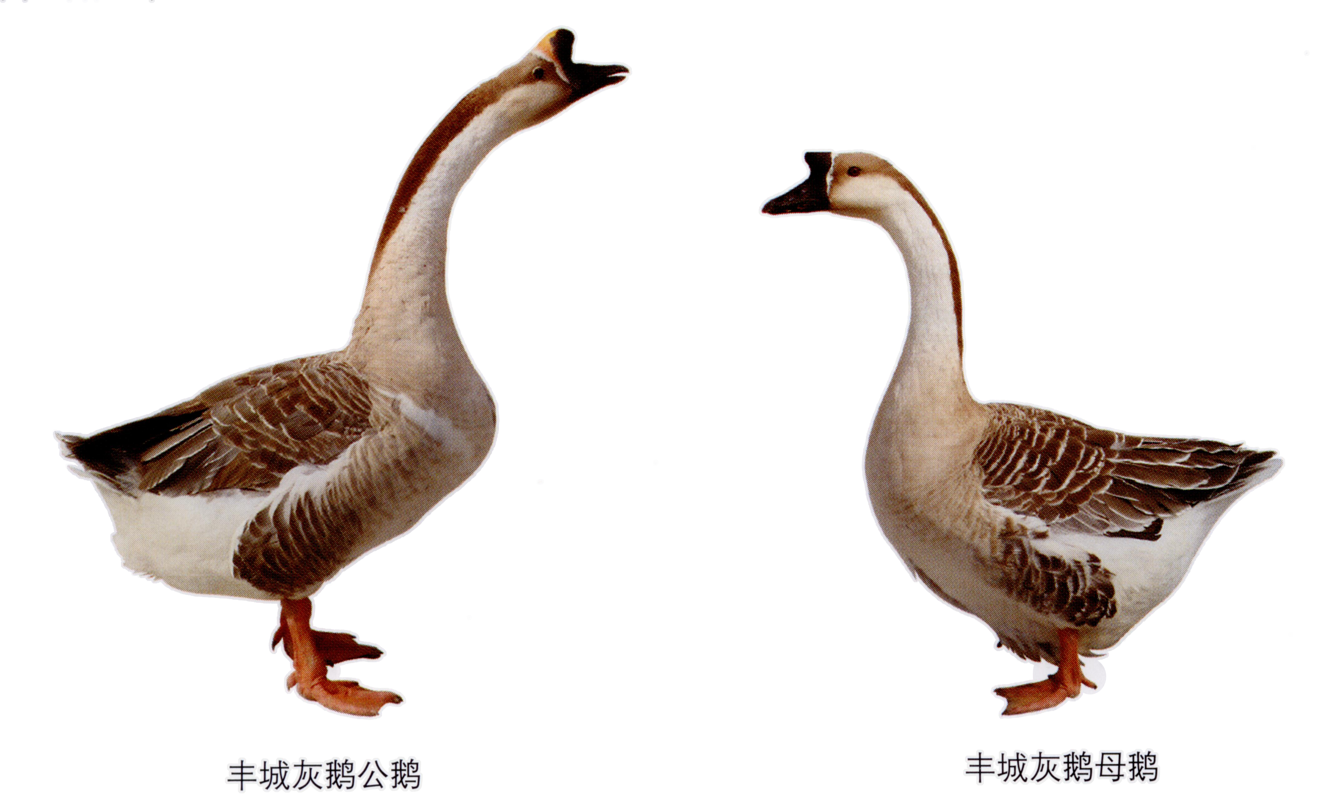 | 主产区及分布 | 中心产区为丰城市和南昌县,分布于樟树、临川、进贤、新建、安义、高安等市(县)。 | 形成历史 | 丰城农民养鹅历史悠久,农户在长期的生产实践中积累了一套饲养管理经验和选种技术。雏鹅饲养60天,从中挑选眼大突出、嘴大、脚高、架子大、胸深、臀宽、胫粗、生长均匀的个体留种,公鹅声音要尖。产蛋1年后,再选产蛋较多、孵化率高的继续 |