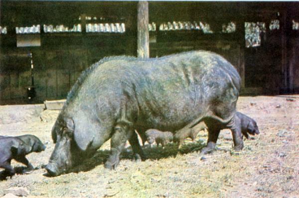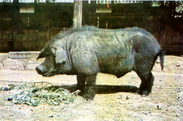 | 体貌概述 | 按体型分大骨猪、细骨猪、二浪子猪三种,大骨猪:体型较大,体质粗糙疏松,嘴筒粗长,头较大,额宽,“八卦头”;耳大下垂,猪体窄长,背腰直间有微凹,胸窄肋扁腹略下垂,十字部宽,臀斜欠丰满,四肢高而粗壮,“穿套裤”;细骨猪:体较小,体质细致,头清秀,额面较平,额纹浅,“直八卦”,耳尖而有力,体短,肩背较窄,胸浅,肋扁,腹圆,臀部都欠丰满。二浪子猪,介于大骨猪和细骨猪之间,头上皱纹近似倒三角形,耳短宽有力,四肢高大,有“套裤”或不明显。毛色有黑色和棕色(火毛)两种,以黑色猪居多。 | 体型 | 按体型分大骨猪、细骨猪、二浪子猪三种,大骨猪:体型较大,体质粗糙疏松,猪体窄长,背腰直间有微凹,胸窄肋扁腹略下垂,十字部宽,臀斜欠丰满,四肢高而粗壮;细骨猪:体较小,体质细致,体短,肩背较窄,胸浅,肋扁,腹圆,臀部都欠丰满。二浪子猪,介于大骨猪和细骨猪之间,四肢高大。 |