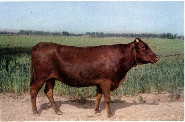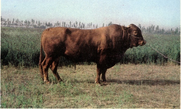 | 体型 | 体型高大,骨骼粗壮,肌肉丰满,体质强健,肩长而斜,胸部宽深,肋长而开张,背腰平直宽广,长短适中,接合良好,荐骨部分多稍隆起,后躯发育稍差。 | 毛色 | 毛色有紫红,红,黄三种,以紫红和红色者居多,也有黑色,灰色和黑斑点的,紫红和红占89%,黄色占11%。 |