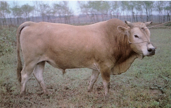 | 体型 | 体型中等偏大,结构匀称,骨骼较粗壮,肌肉发达结实。胸较宽深,腹圆大,背腰尚平,尻部稍斜。四肢干燥有力,公牛肩峰发达;母牛颈细长,平直。 | 毛色 | 以淡黄、红、草白为主,全身毛色以四肢、阴户下部与胸腹底部处较淡,背线及胸腹两侧的色泽最浓。 |