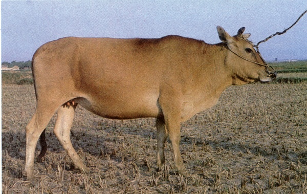 | 濒危依据及说明 | 体貌概述 | 体型中等偏大。结构匀称,皮薄毛细,骨骼较粗壮,肌肉发达结实。角形以迎风角为多。胸较宽深,腹圆大,背腰尚平,尻部稍倾。四肢干燥有力。公牛头方额宽,颈粗短,肩峰发达;母牛头较窄长、清秀,颈细长,平直,乳房发育较好。毛色以浅黄、红、草白为多,全身毛色以四肢、阴户下部与胸腹底部处较淡,背线及胸腹两侧的色泽最浓。 | |