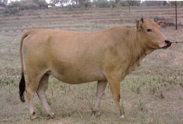 | 濒危依据及说明 | 体貌概述 | 公牛角长。略弯曲或直立稍向外弯;母牛角短,或无角。垂皮发达。肩峰隆起。尾根高,尾长且丛生黑毛。四肢结实,管围略细,蹄坚实。皮薄而有弹性。被毛细短,且富光泽。毛色以黄色居多,其次黑色及不同程度褐色。大部分牛全身表现有十三黑的特征:鼻镜、眼睑、耳尖、四蹄、尾帚、背线、阴户及阴囊下部为黑色。 | |