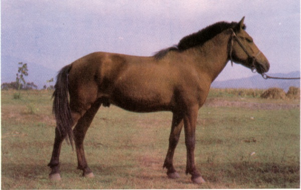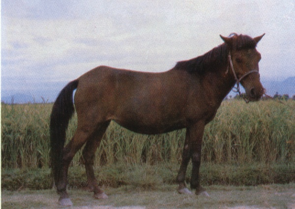 | 濒危依据及说明 | 体貌概述 | 体质结实干燥。体格较小。头稍重,多直头,眼睛亮有神,耳小灵活。颈略成水平或斜颈。鬐甲较尻略低,亦有鬐甲与尻同高或稍高者。胸稍窄,背平直,腰短有力,背腰结合良好,尻略短微斜。四肢较细,肩短而立,肌腱明显,蹄小质坚,肢势一般正常,前肢间有外向,后肢多有刀状。全身被毛短密,鬃、鬣、尾毛较多而长。毛色以骝色较多,其次以黑毛等色。 | |