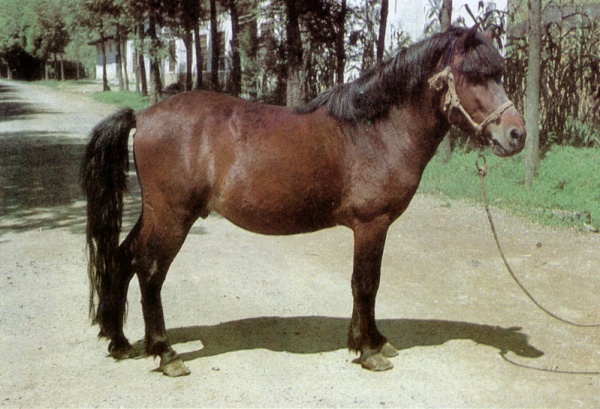 | 濒危依据及说明 | 体貌概述 | 体质干燥结实,短小精悍。头稍重,多直头。眼与鼻孔较大,耳小直立,颈长中等,多斜颈,鬐甲较尻略高。胸部发育正常,肋拱圆适度,背腰短平,腹稍大,尻短而斜,尾础较低。肩短而立,关节强大,肌腱明显。蹄质坚实,前肢肢势正常,后肢略呈外弧或刀状。鬃、鬣、尾毛较多而长。毛色分青、骝、栗、黑毛,其他毛色较少。 | |