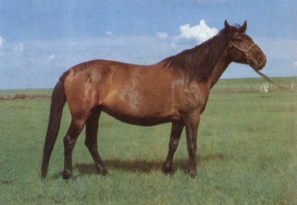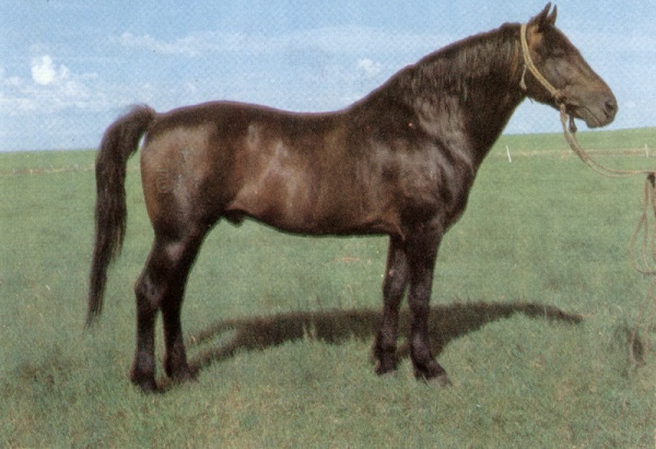 | 体型 | 体质结实干燥,结构匀称,外貌俊美,肌肉结实丰满,颈略长,直颈。鬐甲明显。胸宽而深,肋拱腹圆,背腰平直宽广,尻较宽略斜。四肢干燥有力,肢势端正,蹄质结实。 | 毛色 | 毛色整齐一致,主要为骝、栗两色,杂色极少。 |