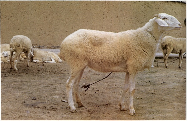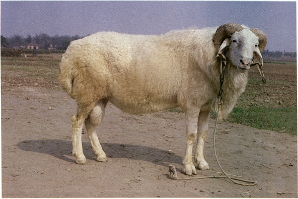 | 体型 | 体质结实,公羊前胸较深,鬐甲高,背腰平直,体躯高大,前后躯发育匀称,侧视呈方形。四肢粗壮,蹄质坚实。脂尾略成椭圆形,下端有纵沟,尾长在飞节以上。 | 毛色 | 体躯毛色为白色,少数羊眼圈周围有黑色刺毛。 |