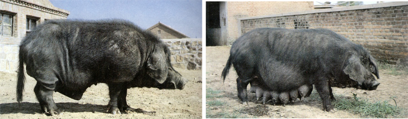头中等大,面直长,耳大下垂,体躯扁平,背腰窄狭,臀部倾斜。四肢粗壮。全身被毛黑色、皮猴,毛密而长,猪鬃较多,粗糙。冬季密生绒毛。 |