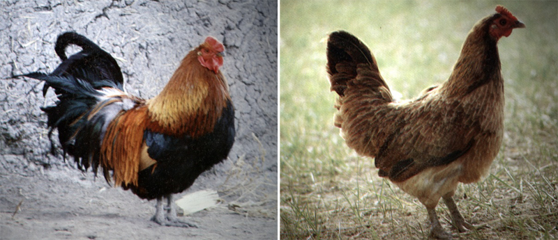 体型中等大小,全身羽毛较厚,羽毛颜色以深黄、浅黄及黑色为主,公鸡多呈金黄色,尾羽较长、呈黑色。头部、肉垂、冠均较小,主要为单冠,少数鸡为玫瑰冠。眼大,虹彩呈红色。喙、胫、趾为黑色或褐色,胫较细,少数鸡有胫羽。 |