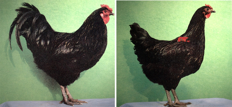 体型较大,胸窄背平,体态浑圆,全身羽毛黑色,具金属光泽。大多呈红色单冠,少数有红色豆冠或紫色单冠或豆冠。喙角黑色。部分有胫羽,胫趾黑色,极少数额下有胡须。皮肤白色,偶有乌皮肤个体。 |