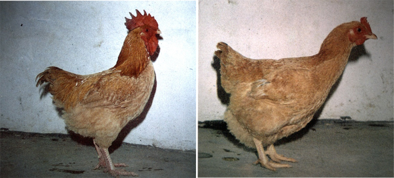 体躯结实短圆,腹部丰满。胸宽、胸深与骨盆宽三者长度相近,整个外形呈方形。公鸡羽毛黄红色梳羽颜色较胸背羽为深。母鸡羽毛黄色。单冠。肉垂、耳叶均鲜红色。虹彩橘红色。喙基部深褐色,喙尖浅黄色。皮肤白色或黄色。 |