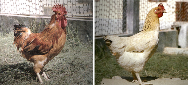 体型较大,背阔胸宽,河田鸡体近方形,有大小型之分。成年鸡外貌较一致,单冠直立,冠叶后部分裂成叉状冠尾。皮肤肉白色或黄色,胫黄色。公鸡喙尖呈浅黄色。母鸡羽毛以黄色为主,颈羽的边缘呈黑色。 |
