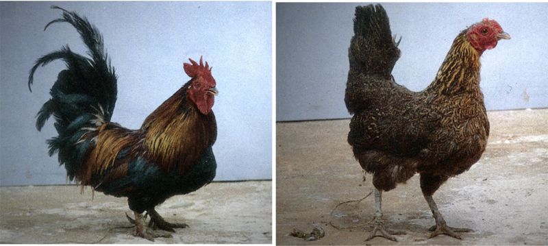 体型矮小,细致,肌肉结实,骨骼轻细,体躯匀称,近似船形,好斗性强。头部清秀。大多呈红色单冠,少数呈豆冠和羽冠。喙黑色,少数黑色带黄色。虹彩黄色居多,肉垂红色。皮肤白色者多,少数浅黄色。胫脚黑色,少数黑色带黄色。 |