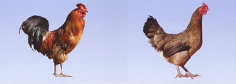 体型小,体质结实,体躯较长,背宽,背线呈“V”字形,尾羽高翘。头中等大,单冠,少数玫瑰冠和豆冠,个别鸡有毛冠,颈较短。全身羽毛较长,腹部副羽发达。主尾羽长18厘米,每侧8根,胫多呈铅色,青绿色,粉色次之。 |