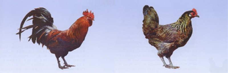 属高原蛋用鸡。鸡头大小适中,颈较细长,平头,单冠、色红。公鸡冠大,厚而直立,母鸡冠薄、质细致,柔润光滑。髯、脸为红色,胸深、向前突出,背平直,喙短粗,有黄、青、铁灰等色。公鸡羽毛多为大红、纯白、黑花三种。 |