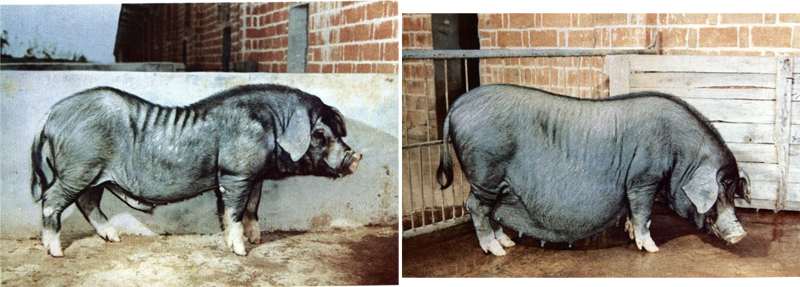 体型中等,头较清秀,耳中等大、下垂呈八字形,头分长头和短头两型,额较窄,皱纹较浅,嘴筒圆而较细;短头型俗称“寿字头”,额较宽,皱纹较深,嘴筒粗而稍扁,脸稍凹,胸宽而深,背腰宽而微凹,腹大略下垂,体态前高后低,被毛黑色,仅四肢下端为 |