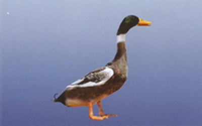中小型蛋肉兼用鸭,公鸭头、喙稍大,体躯深长,头羽花绿色,颈、背羽褐麻色,颈下有白色颈圈。胸羽浅褐色,腹羽灰麻色,镜羽翠绿色。母鸭全身羽毛以褐麻色为主,颈下有白色颈圈。蹼橙黄色,虹彩褐色。 |