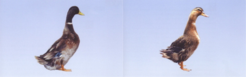 小型肉蛋兼用鸭种,体格较小,体质坚实紧凑。喙呈橘黄色,喙都多为黑色,胫、蹼橘红色。母鸭羽色以麻褐色居多,体躯、臀部的羽毛均以浅褐色为底,上具黑色斑点。颈下部有白色颈圈。公鸭毛色有“青头公鸭”和“沙头公鸭”两种。 |