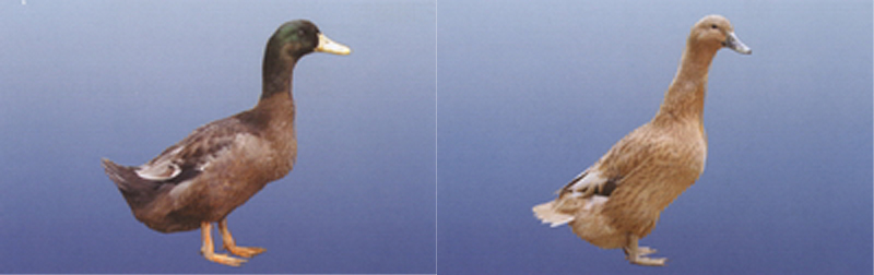 体型方圆,羽毛疏松,头粗大,颈粗短。羽毛疏松。胸宽深而微起,背短,虹彩褐色。鸭绿头颈上部羽毛和尾羽有墨绿色发光的羽毛颈中部有白色颈圈。胸部毛褐色。母鸭羽毛深麻色,喙青黄色、喙豆黑色,胫、蹼橘黄色,爪黑色。 |
