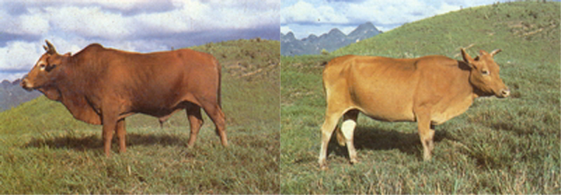 体躯低垂、粗壮而略短,并有背线。被毛黄色或枣红色,四肢以下为浅黄或黑色;公牛角有竹笋形和鹰爪形,母牛角短小;头较宽短,颈垂发达,稍有胸垂,尻斜圆,尾长过飞节。 |