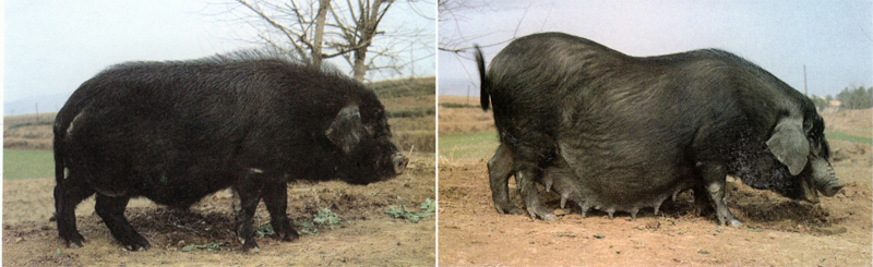体型中等,体质细致健壮。额窄、较清秀,有细浅而清晰的纵向皱纹。耳中等大、下垂。嘴筒长直,个别略翘,背腰较平直,腹中等大,臀部平圆,间有斜尻。大腿欠丰满,骨骼较细,后肢多卧系。被毛全黑 |