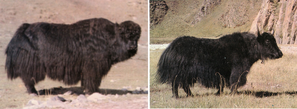 体型外貌上多有野牦牛的特征。头大,角粗,母牛头长、额宽,有角。鬐甲高长而宽,前躯发达,后躯较差。结构紧凑。前肢短而端正,后肢呈刀状;毛色多为黑褐色占72%,嘴唇、目框周围和背线处短毛,多为灰白色或污白色。 |