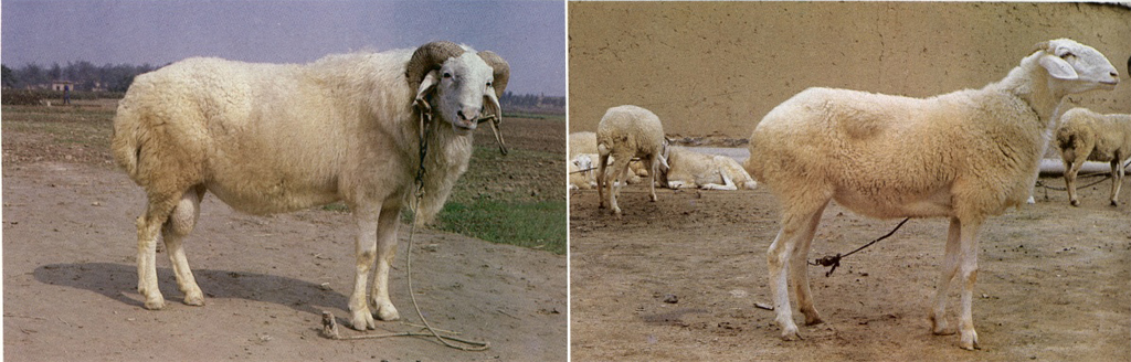 体质结实,鼻梁隆起,耳大下垂。公羊有较大的螺旋形角,母羊有小角,姜角或角根。公羊前胸较深,鬐甲高,背腰平直,体躯高大,前后躯发育匀称,侧视呈方形。四肢粗壮,蹄质坚实。脂尾略成椭圆形,体躯毛色为白色。 |