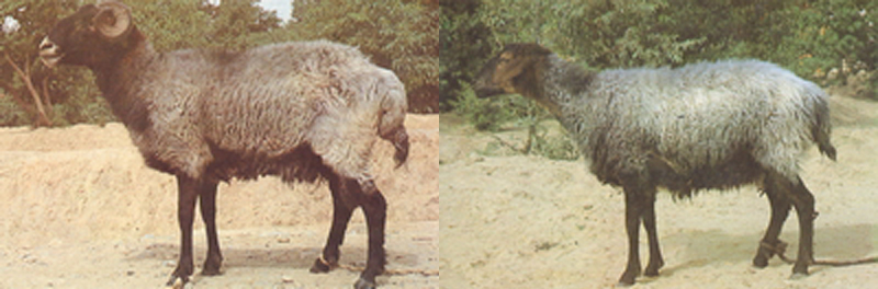 体质结实、紧凑,体格中等大小,属羔皮型绵羊胸部较窄,背腰平直较短,十字部较宽平,四肢端正结实。头较窄长。鼻梁隆起,耳较长,半下垂。公羊多数具有大螺旋形角。角尖向上向下伸出,母羊都都无角,或有不发达的小角。 |