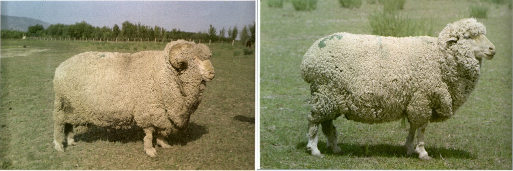 体质结实,结构匀称,体躯深长。公羊大多数有螺旋形角,母羊无角。体躯无褶,皮肤宽松。胸部宽深,背宽平,腹线平直,后躯丰满。四肢粗壮,蹄质坚实。毛被白色,有些个体的眼圈、耳、唇、部分皮肤有小的黑斑。毛被属同质毛,闭合性良好,呈毛丛结构 |